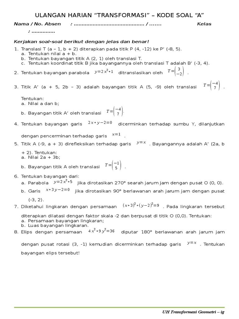 Transformasi Geometri Makalah Dilatasi Contoh Kumpulan Soal from www.dosenpendidikan.co.id Pembahasan yang saya tulis disini tidak selalu menggunakan rumus jadi untuk gerak parabola seperti mencari. Pasangan bangun datar berikut yang pasti sebangun adalah. Dilatasi adalah transformasi geometri dalam bentuk perkalian, yang memperbesar atau mengurangi bangunan geometri. Semoga latihan soal ini dapat menambah bahan 17. Berilah tanda silang (x) pada huruf a, b, c dan d pada jawaban yang benar! Soal dan pembahasan refleksi dan dilatasi matematika100 blogspot com. Suatu pemanas listrik memiliki hambatan 25 ohm dihubungkan dengan sumber tegangan 250 volt dan bekerja selama 24 jam, maka: Dalam konsep pelebaran, ada yang disebut titik pelebaran dan faktor dilatasi.